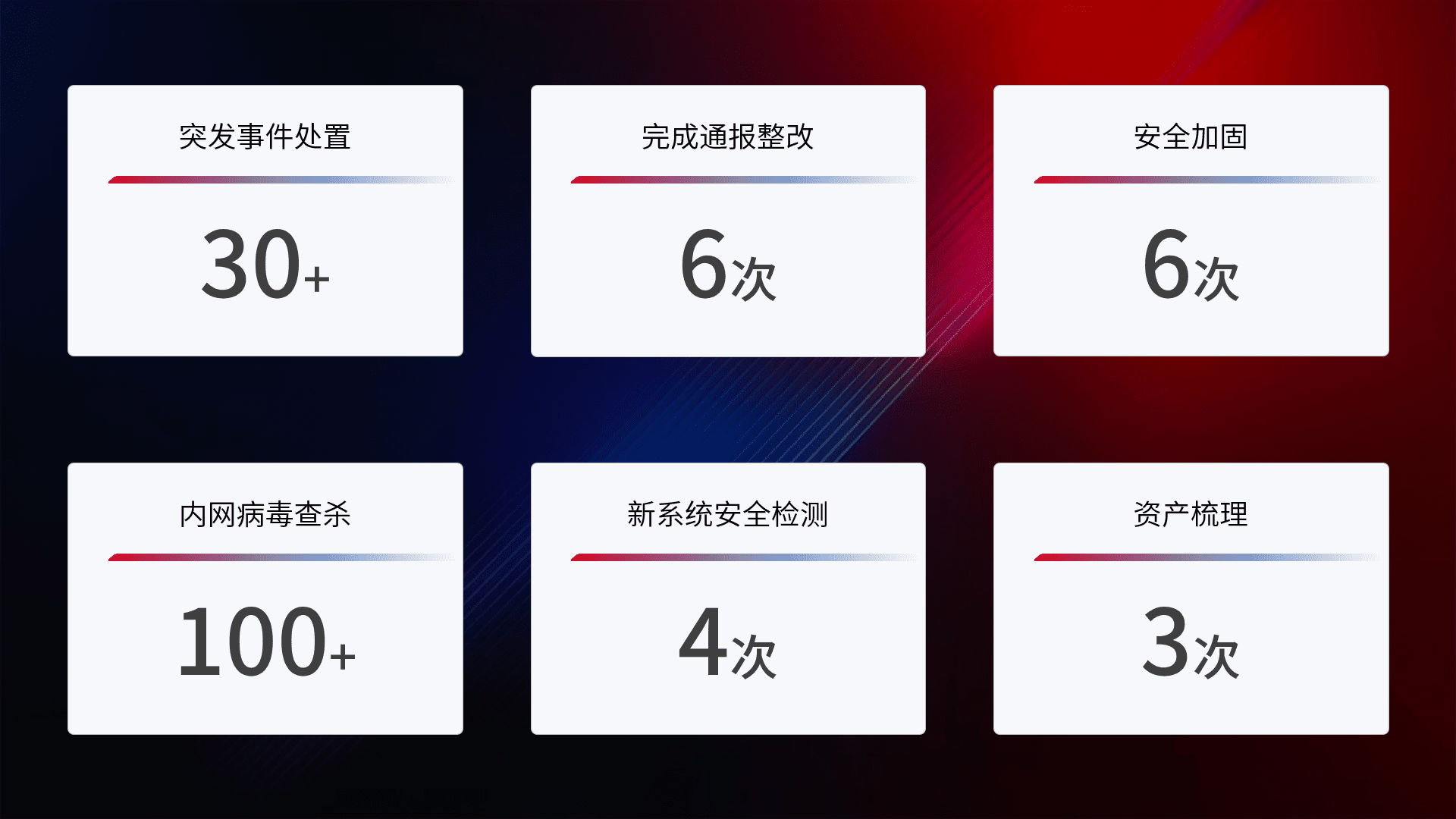 网络安全加固与风险管理:通过技术加固手段,,如加强区域隔离,,,,缩减攻击内网横向移动的范围;优化现有网络安全管理制度,,,,降低网络威胁暴露面,,,减少被黑客攻击的可能性。。。